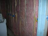 More insulation. Outlet at the lower left for... whatever. Switch for outside light and a three-way switch for the overhead lights. Single outlet circuit, probably for the microwave.
